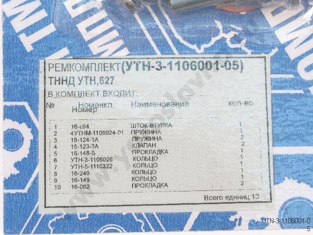 УТН-3-1106001-05 Ремкомплект ТННД УТН, 627 (+)шток-втулка+пружины+клапана