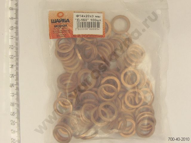 700-40-2010 Прокладка форсунки ЧТЗ пламегасящая медная 14х20х3мм.