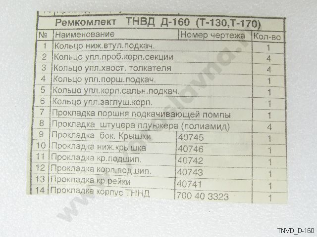 ТНВД Д-160 Ремкомплект ТНВД ЧТЗ 14 наименований