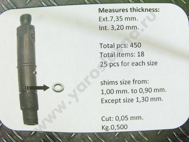 DTP 43 505 | Набор регулировочных шайб форсунки 7,35х3,2х1,00-1,85 (18х25шт. = 450 шайб) DTP | - |