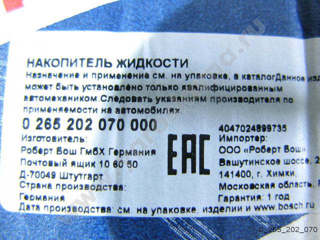 Артикул: 0 265 202 070