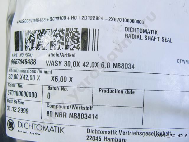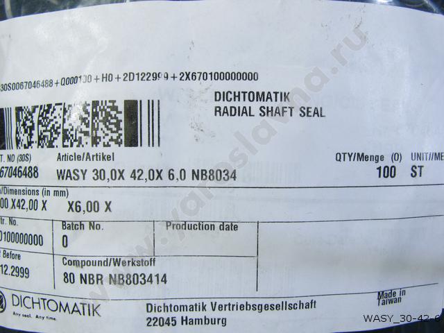 WASY 30-42-6 Манжета 30х42х6 NBR BLUE DICHTOMATIK