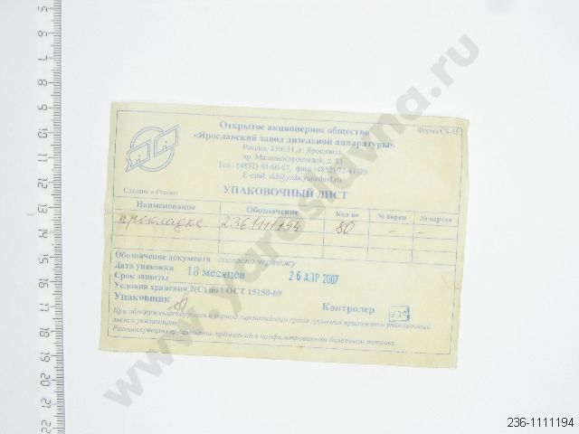 236-1111194 Прокладка ТНВД ЯМЗ самая тонкая ЯЗДА