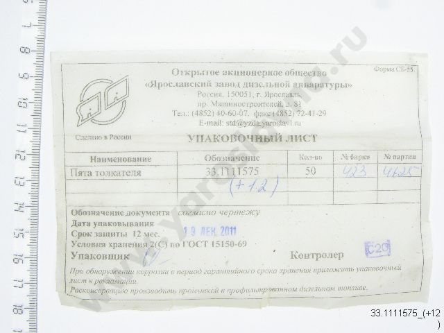 | 33-1111005-75 | Ремкомплект набор пят толкателя (от +15 до -15) по 1 шт. | 1 | 1 |