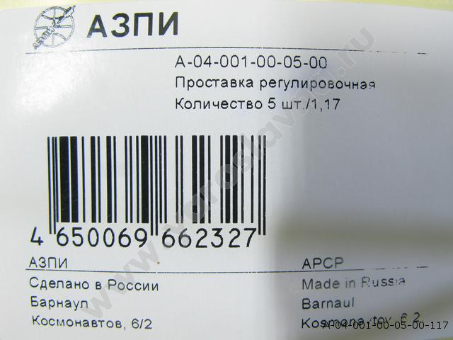 А-04-001-00-05-00 (1,17) Проставка форсунки регулировочная (комплект 5шт.) АЗПИ