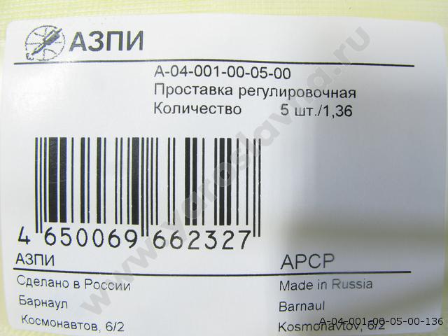 А-04-001-00-05-00 (1,36) Проставка форсунки регулировочная (комплект 5шт.) АЗПИ