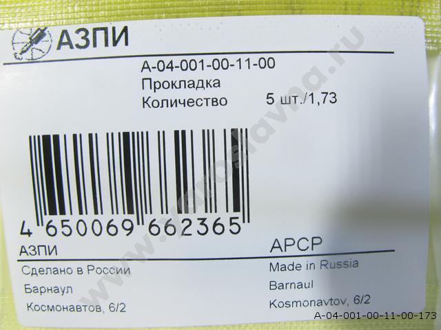 А-04-001-00-11-00 (1,73) Прокладка форсунки комплект 5 шт. АЗПИ