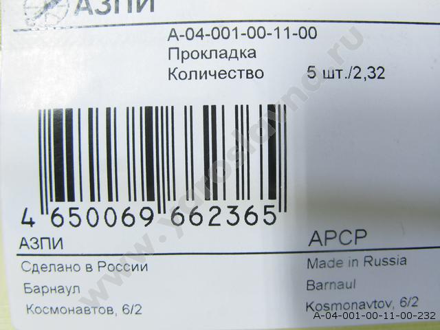 | А-04-001-00-11-00 | Набор прокладок форсунки каждой по 5шт. (1-2,32 мм. шаг 0,01) АЗПИ | 1 | 2 |