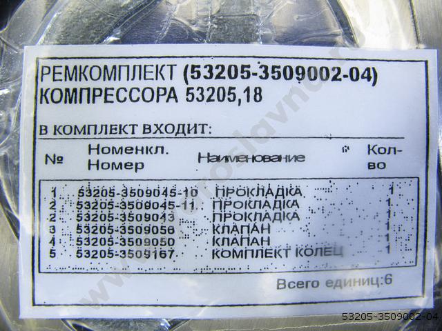 53205-3509002-04 Ремкомплект компрессора 53205,18 прокл, клапана,кольца