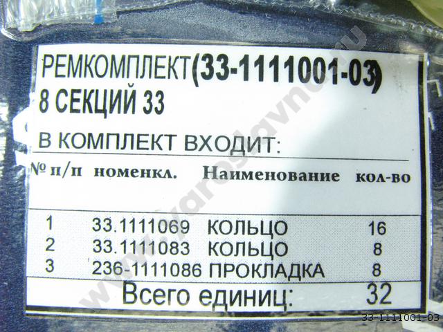 33-1111001-03 Ремкомплект 8 секций 33 (стар.образца) РТИ+пластмасса