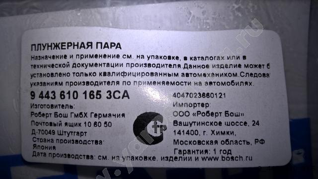 9 443 610 165 Пара плунжерная 131152-4820 (маркировка A177) BOSCH