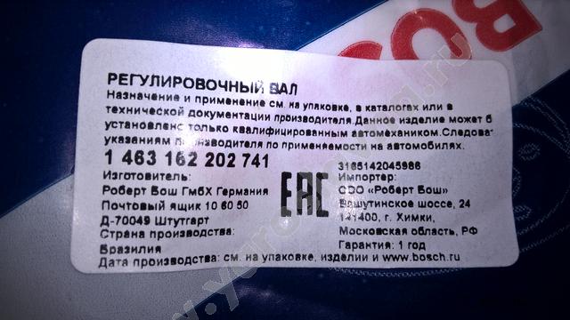 1 463 162 202 Вал управления BOSCH
