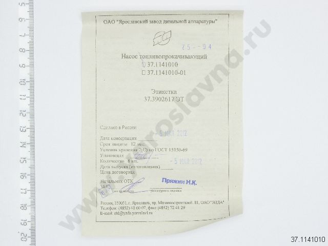 | 37.1141040 | Клапан НППТ ЯЗДА | 2 | 295 |