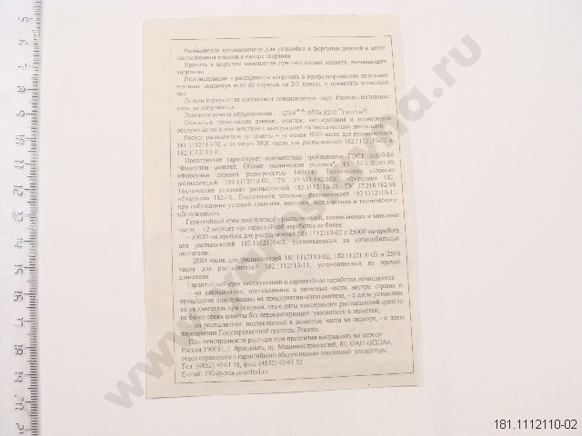 181.1112110-02 Распылитель ЯМЗ-8401, ТМЗ вместо 181.1112110-01 ЯЗДА