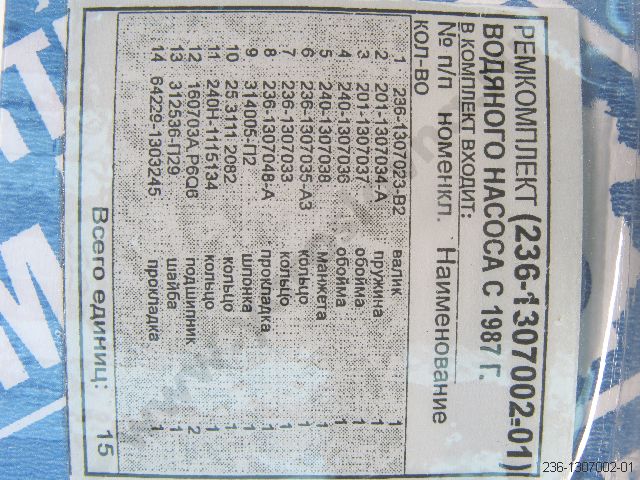 Краткая применяемость: вод. насоса ЯМЗ-236