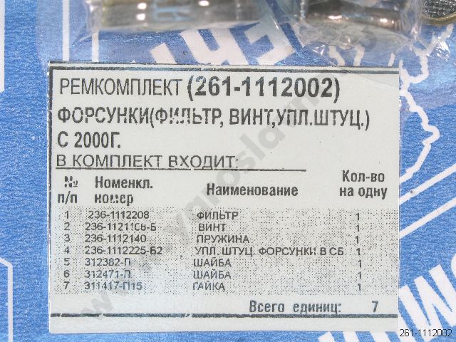 261-1112002 Ремкомплект для 1 форсунки ЯМЗ с 2000 г. фильтр+винт+упл. шт.