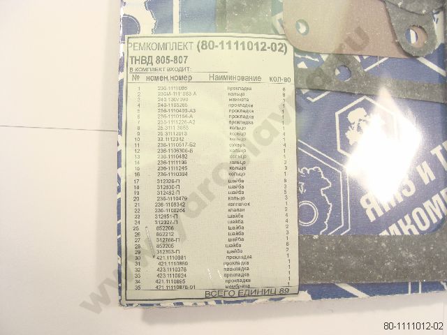80-1111012-02 Ремкомплект ТНВД 805-807, с корр. РТИ+Cu+паронит+пласт