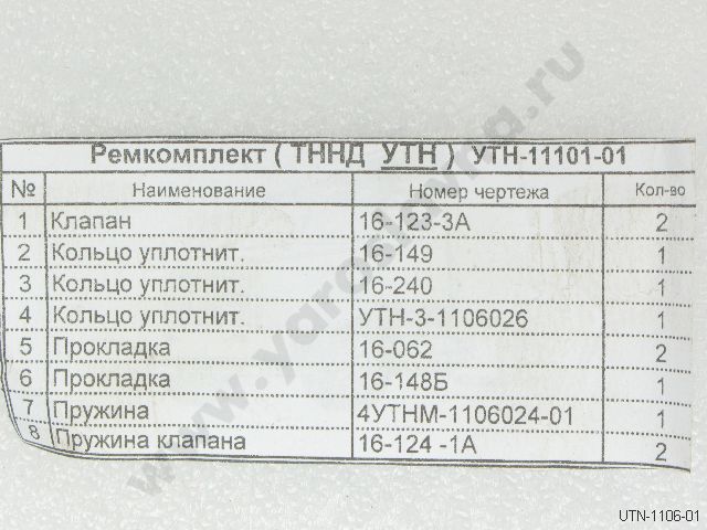 УТН-1106-01 Ремкомплект ТННД УТН 8 наим.