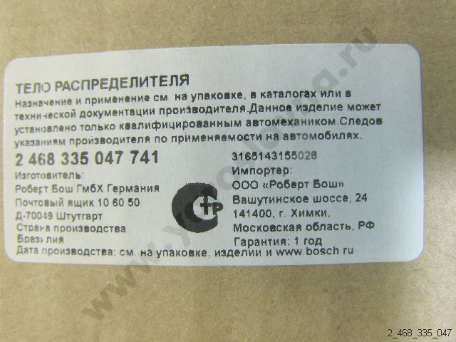 2 468 335 047 Корпус распределителя BOSCH