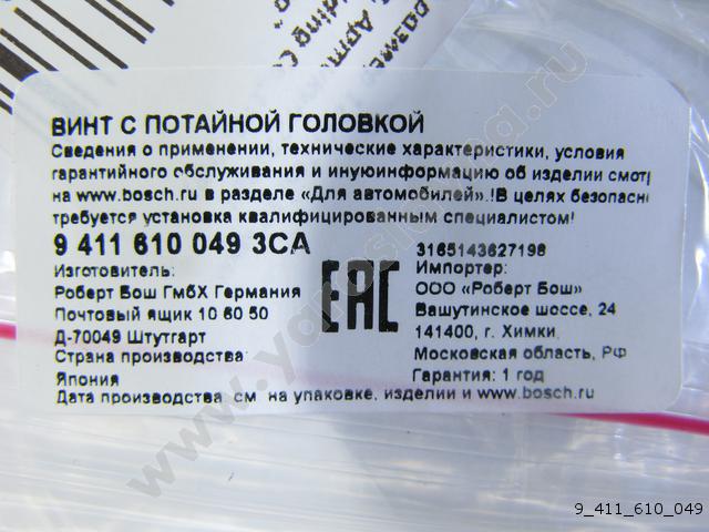 9 411 610 049 Винт с потайной головкой (139104-0000) BOSCH