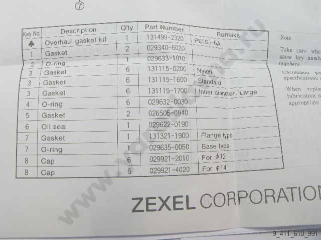 | H 131 499 232 | Ремкомплект ТНВД PE(S)-6A 20mm ZEXEL 131499-2320 замена 9 411 610 991 BOSCH | - | ||