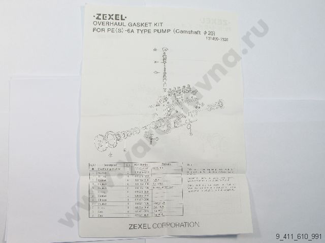 9 411 610 991 Ремкомплект ТНВД PE(S)-6A 20mm ZEXEL 131499-2320 BOSCH