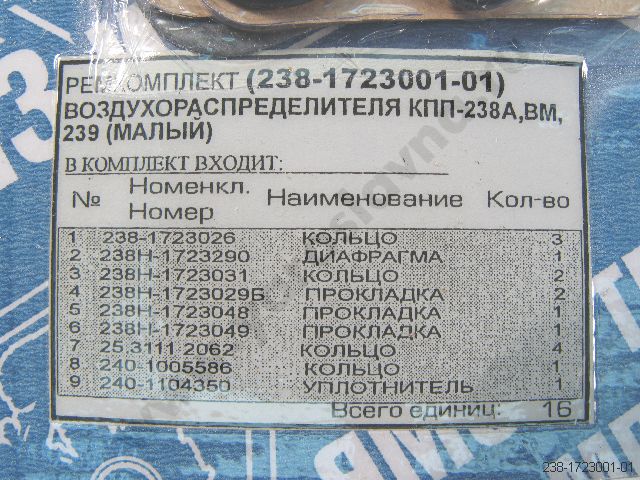 238-1723001-01 Ремкомплект воздухораспред. КПП-238А/ВМ, -239 малый