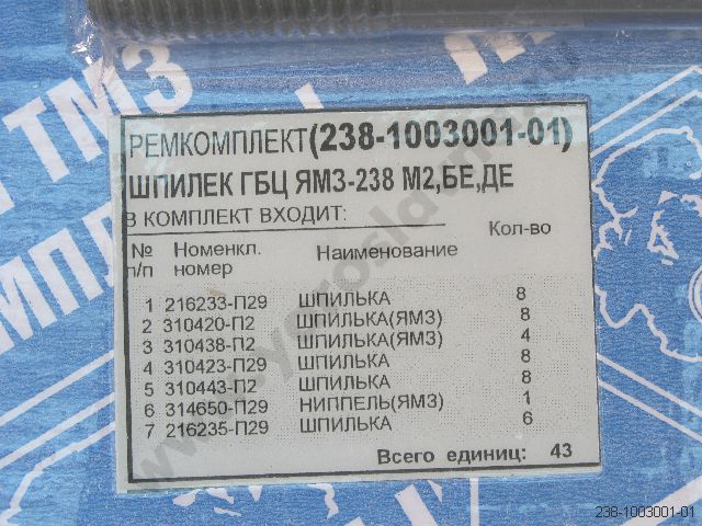 238-1003001-01 Ремкомплект шпилек ГБЦ ЯМЗ-238