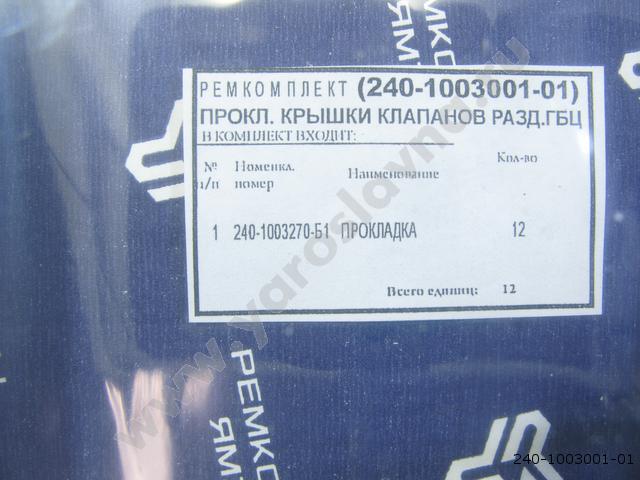 240-1003001-01 Ремкомплект прокладок клап. крышки разд. ГБЦ паронит, 12 шт.