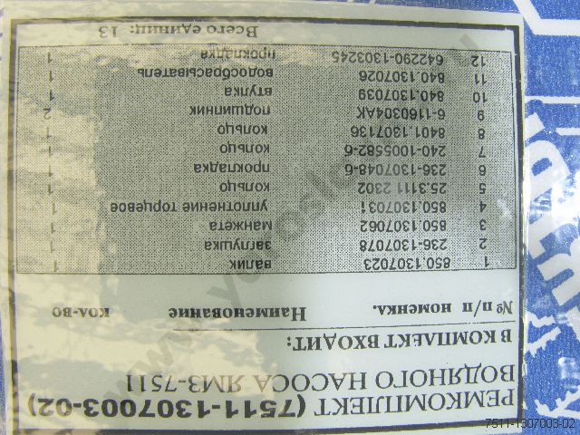 7511-1307003-02 Ремкомплект вод. насоса ЯМЗ-7511