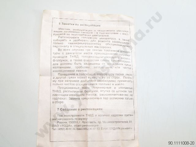 90.1111008-20 ТНВД ЯМЗ-240М2, БелАЗ-7522 ЯЗДА