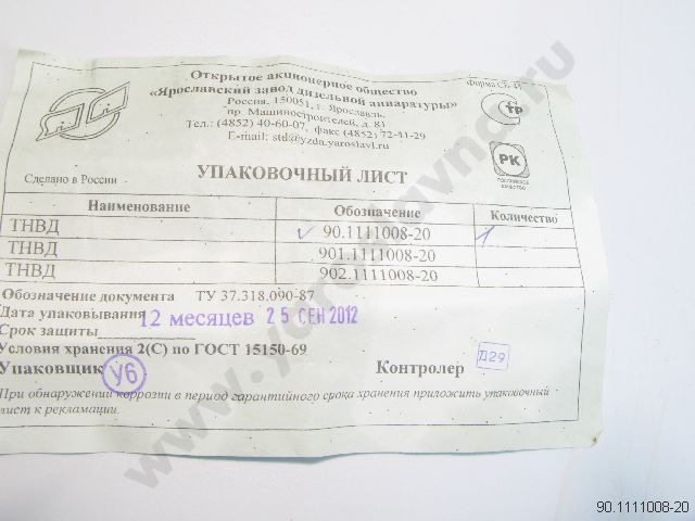 | 90-1111013-03 | Ремкомплект ТНВД 90., 901. РТИ+паронит | 1 |