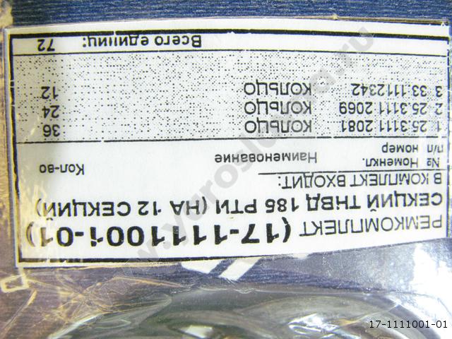 17-1111001-01 Ремкомплект РТИ 12 секций ТНВД 185.