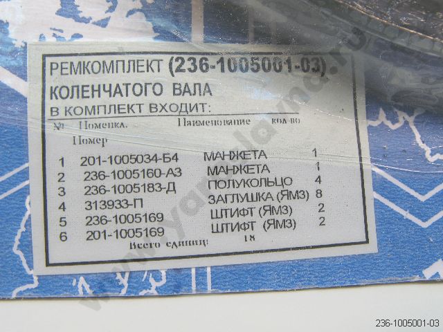 236-1005001-03 Ремкомплект коленчатого вала манж+п/кольца+загл.