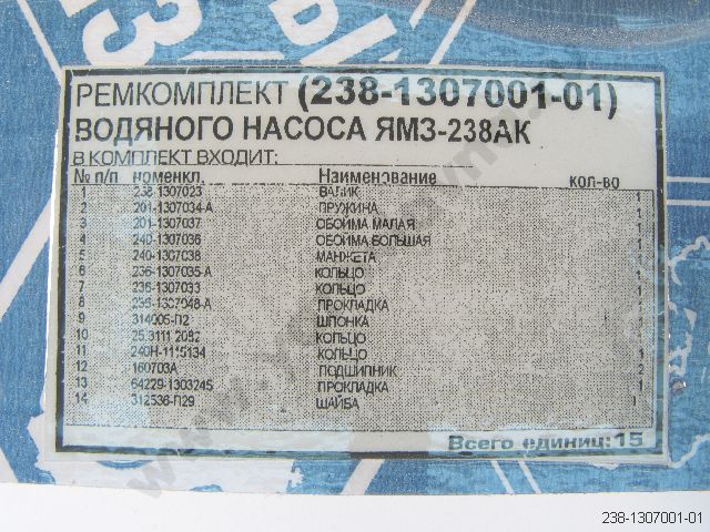 238-1307001-01 Ремкомплект вод. насоса ЯМЗ-238АК вал+подш