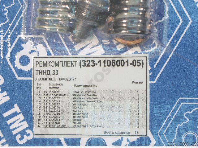 323-1106001-05 Ремкомплект ТННД 323., 332. (+)шток+пруж+клап+резьб.вставки