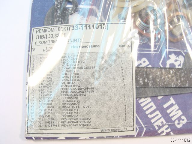 | 33-1111002-05 | Ремкомплект ТНВД 33., 33-01 РТИ+паронит+втул+резьб.вставки+пруж | - | ||