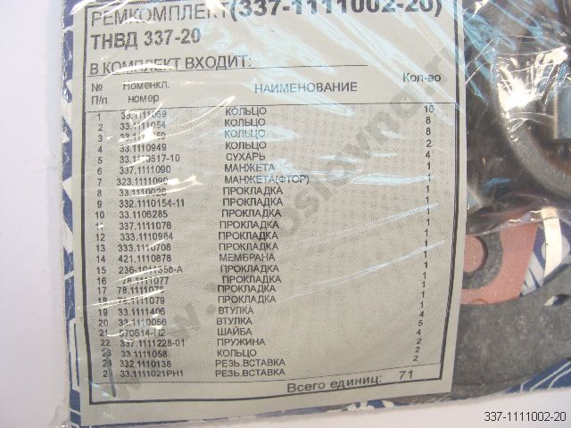 337-1111012-20 | Ремкомплект ТНВД 337-20 РТИ+паронит+Cu+пл+вставки | 50 | 845.50 |