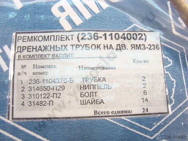 236-1104002 Ремкомплект дренажных трубок ЯМЗ-236 общ. ГБЦ