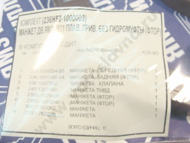 236НЕ2-1000003 Ремкомплект манжет ЯМЗ-7601 плав. привод без гид/муфты, ФТОР