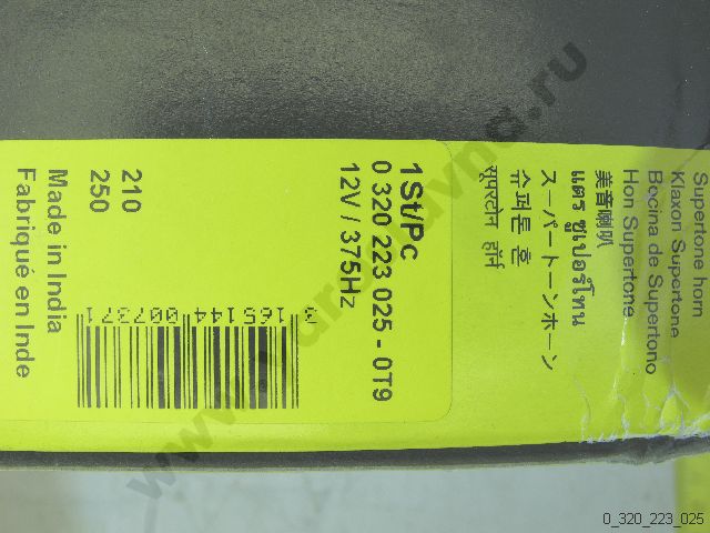 0 320 223 025 Горн SUPERTONE 115Дб 375Гц 12В черный/вертик180гр BOSCH
