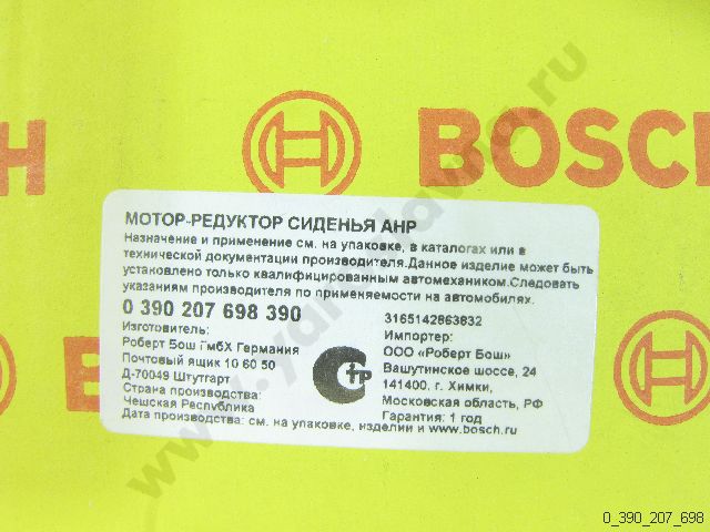 0 390 207 698 Мотор-редуктор сиденья AHP BOSCH