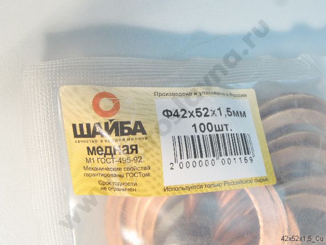 42x52x1,5 Cu Прокладка медная