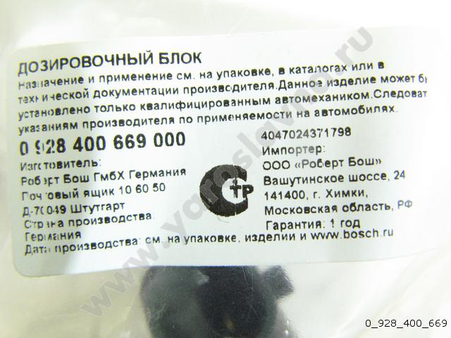 0 928 400 669 Блок дозировочный ZME 3 BOSCH