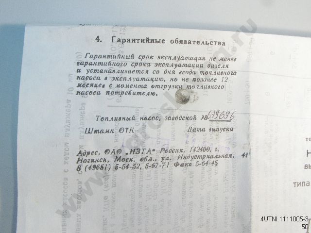 Наименование: ТНВД