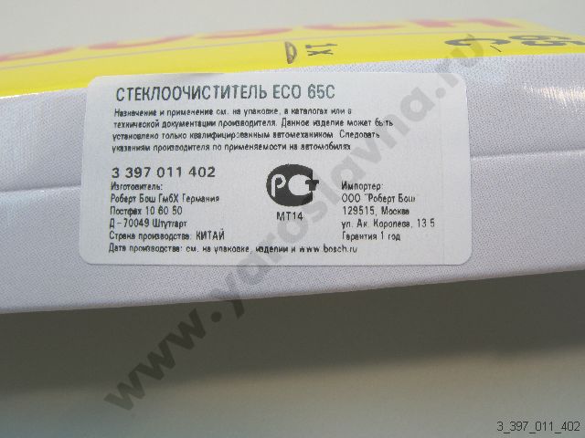 3 397 011 402 Стеклоочиститель ECO 65C 650 мм. [65C] BOSCH