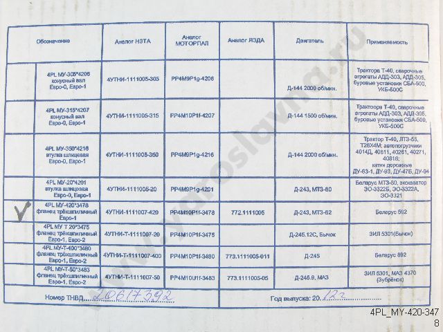 PP4M10U1f-3478 | ТНВД Д-243 ан. 4УТНИ-420 Motorpal | - |