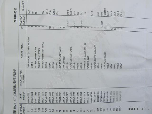 096010-0551 Ремкомплект ТНВД мех. VE без ТК с ВК 1990-- Denso