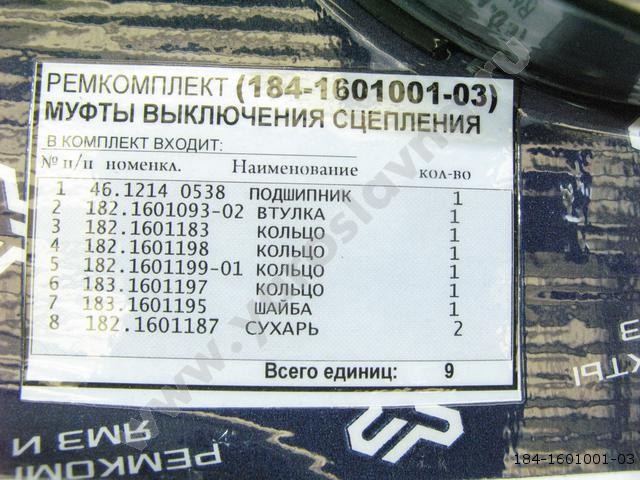 184-1601001-03 Ремкомплект муфты выкл.сцепл.184 (кол,шайба,втул,подш,сух)