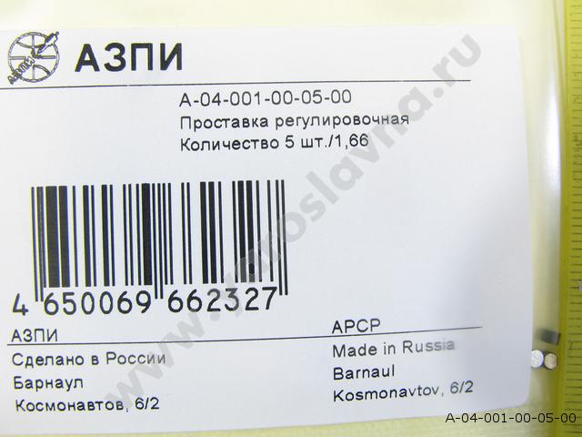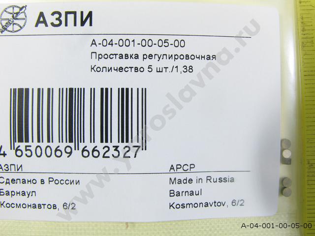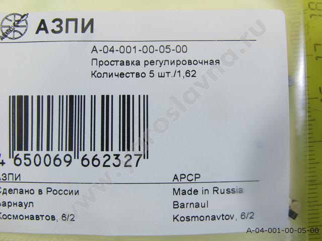 А-04-001-00-05-00 Набор проставок форсунки каждой по 5шт. (1-1,99 мм шаг 0,01) АЗПИ